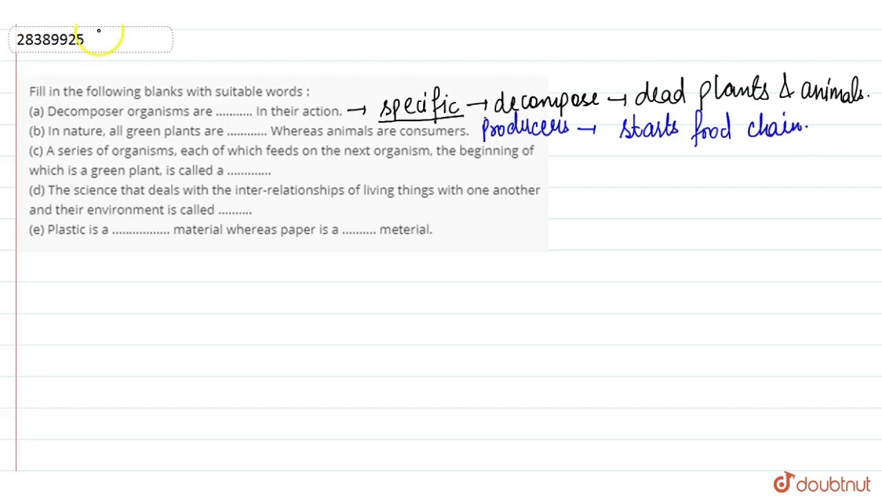 Fill In The Following Blanks With Suitable Words A Decomposer Organisms Are In Their Youtube